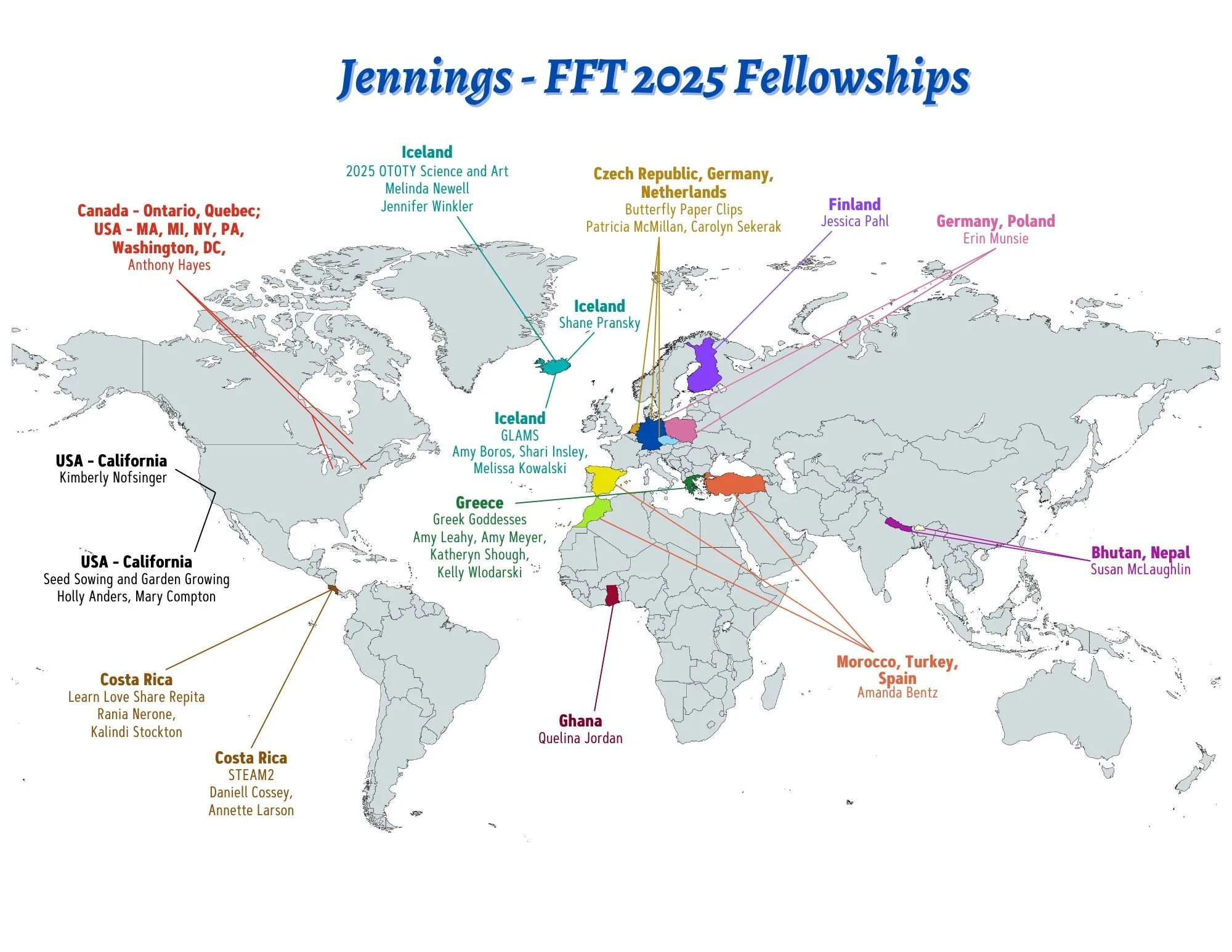 See the list of our newest Fellows here and check out that map below to see their travel destinations. We are looking forward to highlighting these amazing and dedicated teachers following their Summer travel experiences.